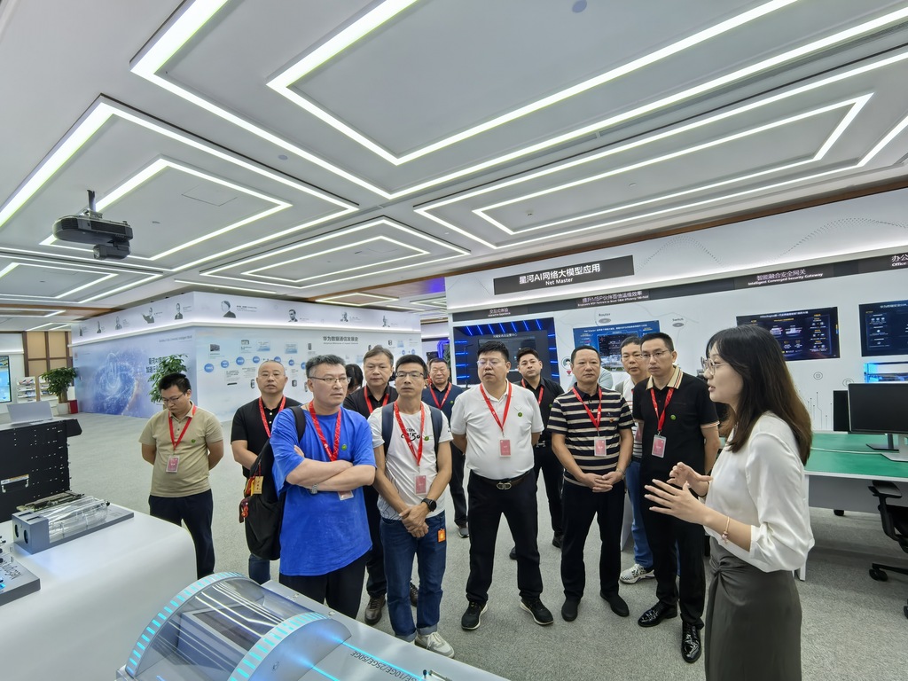 上午會員們首先來到了華為深圳坂田基地,作為華為的全球總部,代表了華為在科技創(chuàng)新和全球業(yè)務(wù)布局中的核心戰(zhàn)略,華為坂田基地不僅是技術(shù)研發(fā)的中心,也是公司文化和管理模式的展示平臺。在工作人員的引導(dǎo)下,大家首先參觀了華為的星河AI網(wǎng)絡(luò)技術(shù)展廳。展廳內(nèi)展示了華為在WIFI技術(shù)、云計算、人工智能等領(lǐng)域的最新成果。特別是在AI技術(shù)方面,華為展示了其在全球AI網(wǎng)絡(luò)建設(shè)中的重要角色及相關(guān)技術(shù)的實際應(yīng)用案例。商會成員們在參觀過程中,對于AI網(wǎng)絡(luò)的覆蓋范圍、數(shù)據(jù)傳輸速度及其在智能城市、智能交通等領(lǐng)域的應(yīng)用有了更直觀的了解。