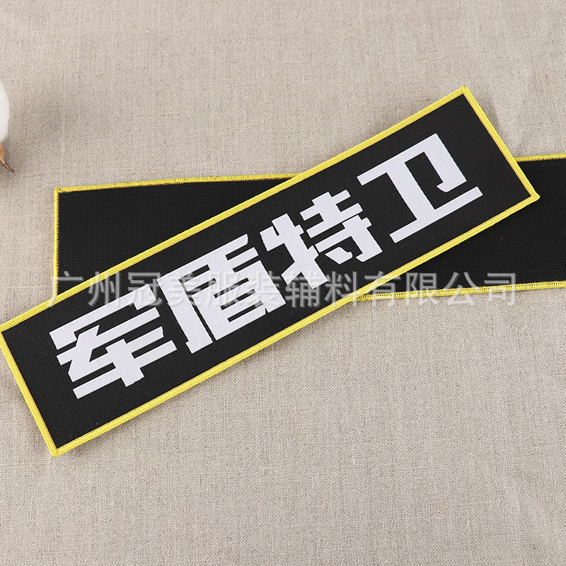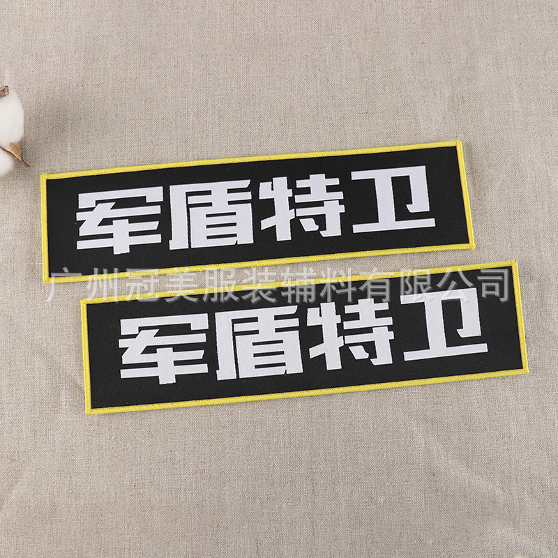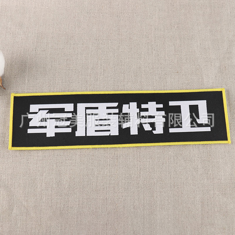 高緯密領標織嘜特勤魔術貼鎖邊標識白底黑字鎖邊布貼
