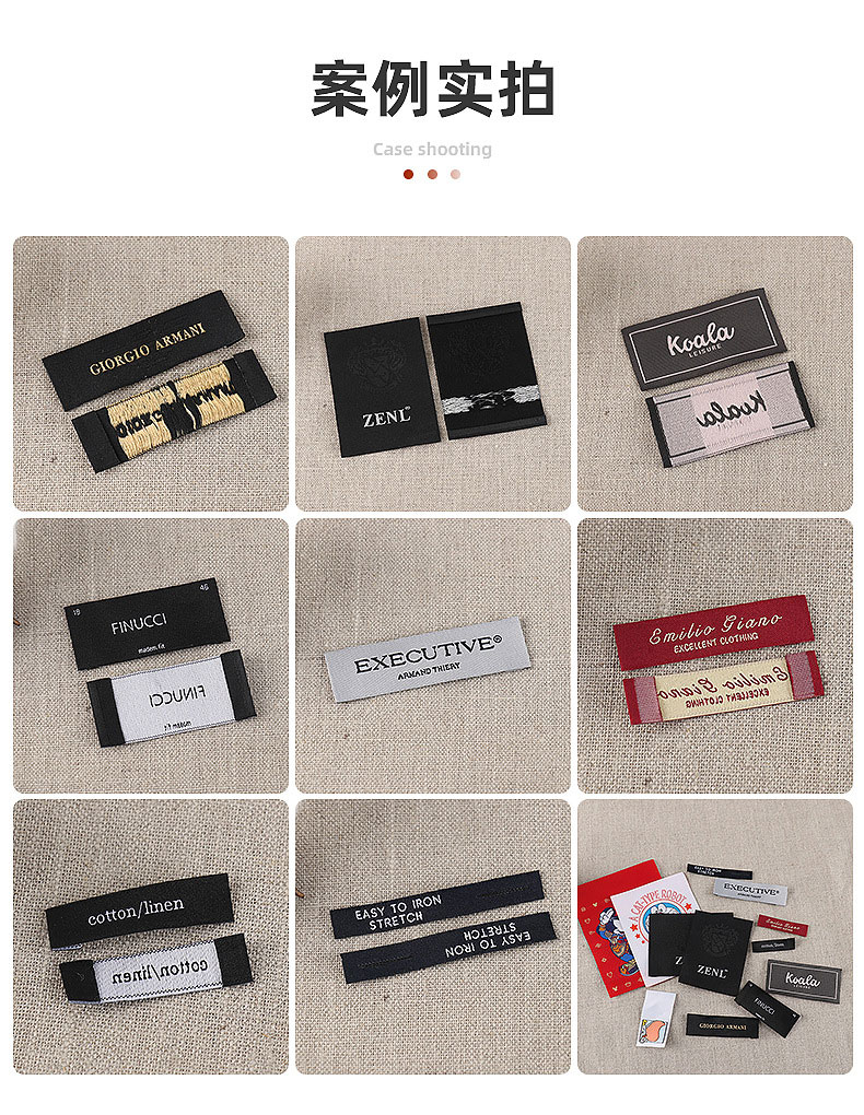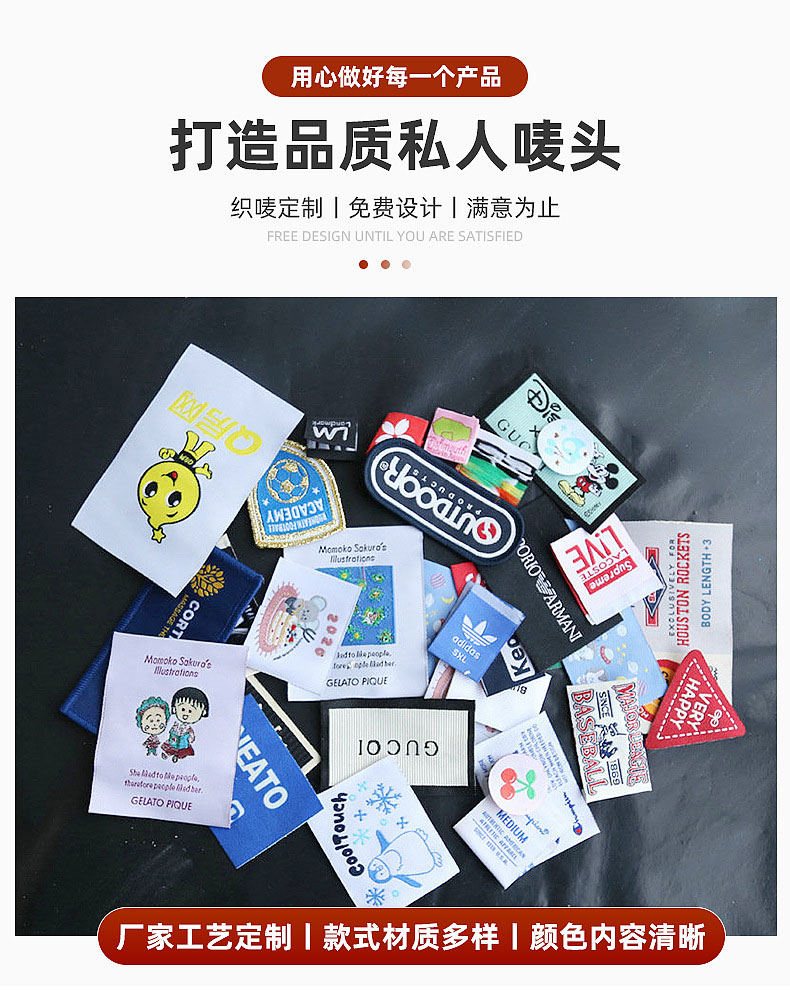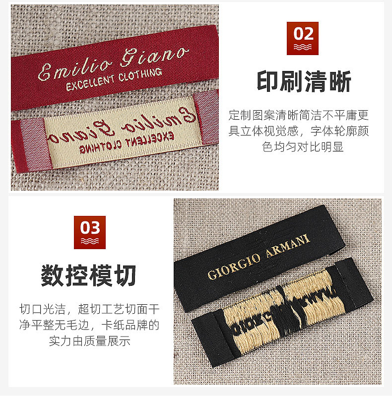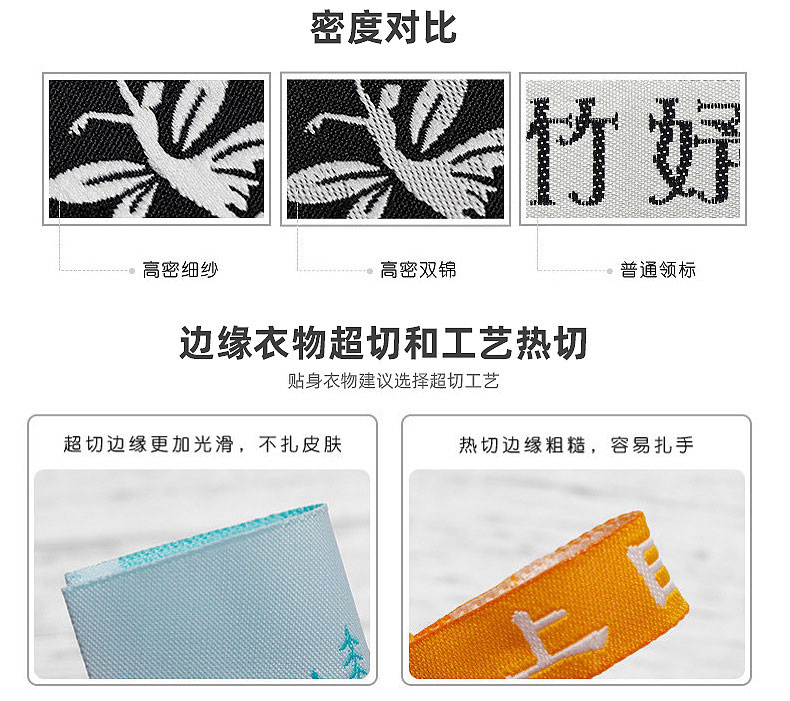 高品質服裝領標織嘜商標 滌綸絲材料高緯密水洗標標簽箱包布標