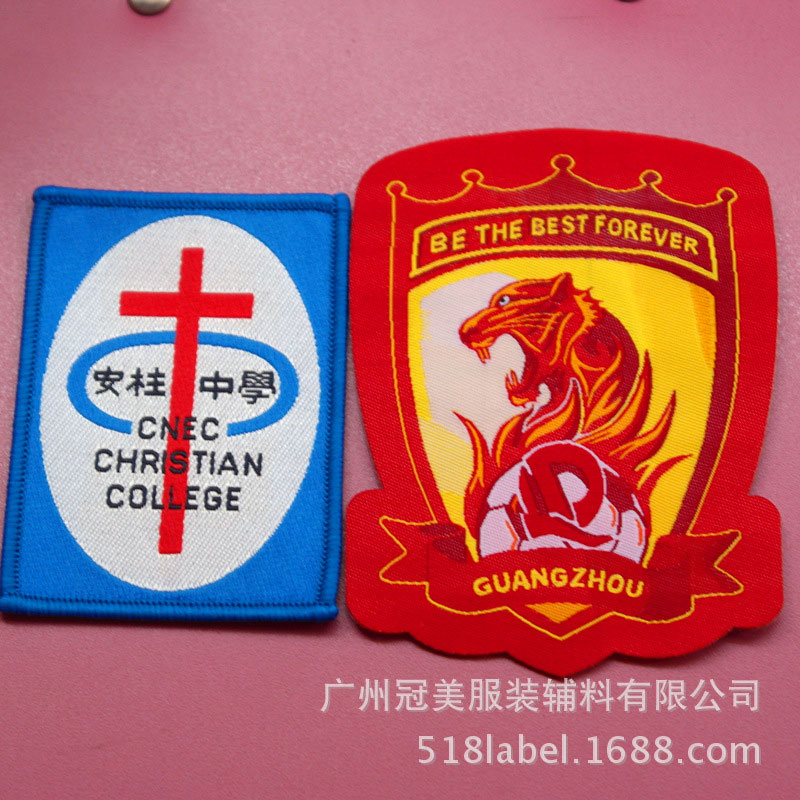 廣州冠美織嘜吃供應2024年新款校服運動服制服服裝織嘜織章肩章